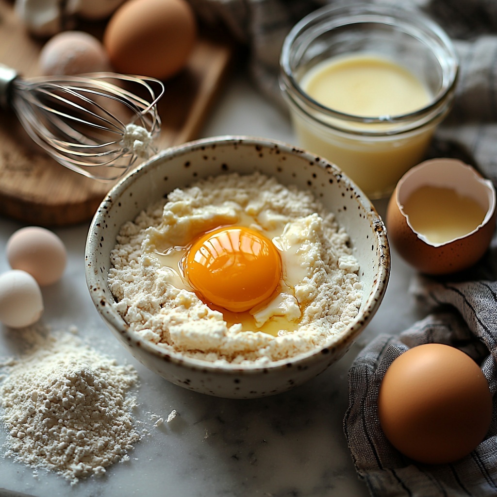 - Mix Wet Ingredients: In a separate bowl, crack open 1 large egg. Add 1 tablespoon of melted butter and 1/2 cup of milk. Whisk these ingredients together until smooth to create a consistent wet mix.